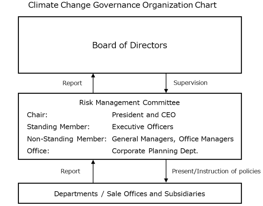 The Risk Management Committee extracts, analyzes, and evaluates risks related to climate change and determines policies for dealing with these risks, along with company-wide risks.